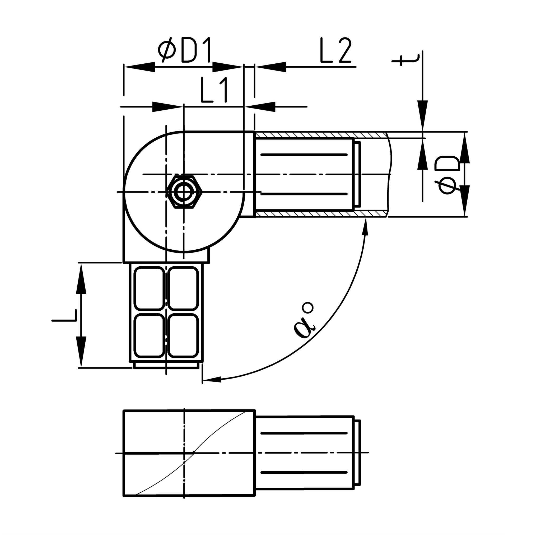 Nastaviteľný uhol materiál: Telo - Polyamid (PA 6) Skrutka + matica - pozinkovaná oceľ