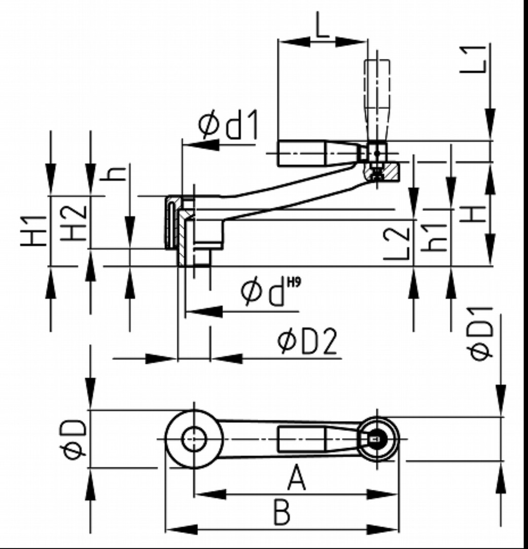Úvod Sortiment Ovládacie kolesá a páky Kľuka so sklopnou rukoväťou a slepou dierou
