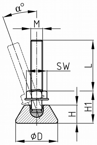 Nastaviteľná skrutku - kĺbový klzák pre stredné zaťaženie s plastovým guľovým čapom Príklady použitia: podnože pod stoly, kovové konštrukcie, regály Farba: čierna Materiál: telo - Polyethylen (PE) závit - pozinkovaná oceľ guľový čap - Polyethylen (PE)