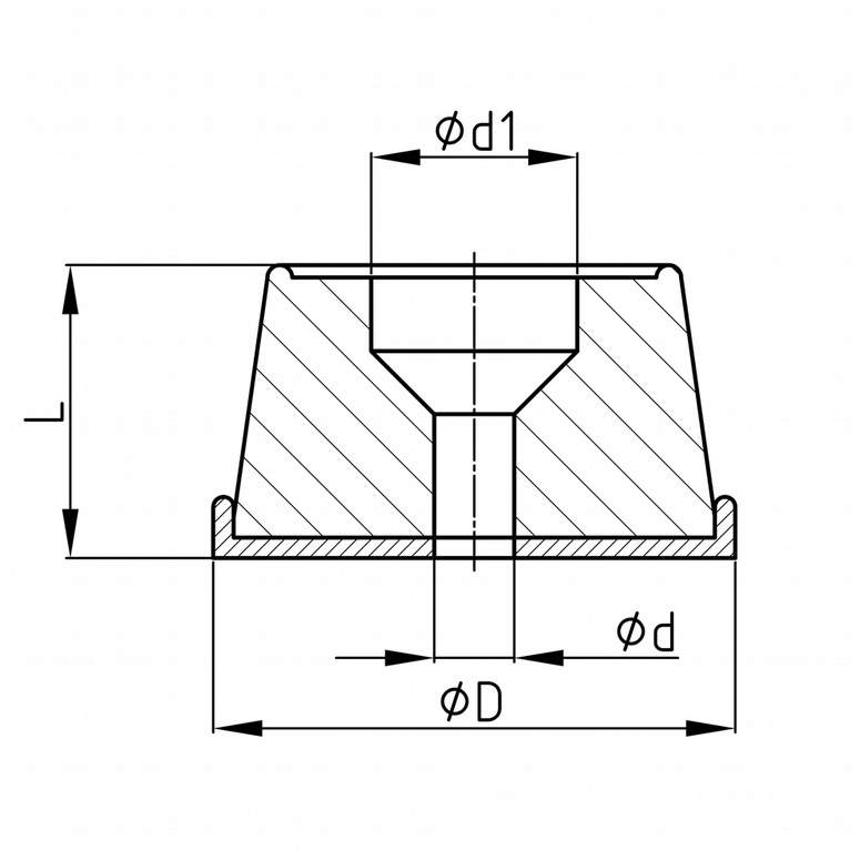 Nábytkový klzák - guľatá nábytková noha s otvorom pre skrutky so zapustenou hlavou / klince Dosadacia plocha z elastického termoplastu Farba: bezfarebná Materiál: telo - Polypropylén (PP) dosadacia plocha - termoplastický elastomér (TPE)