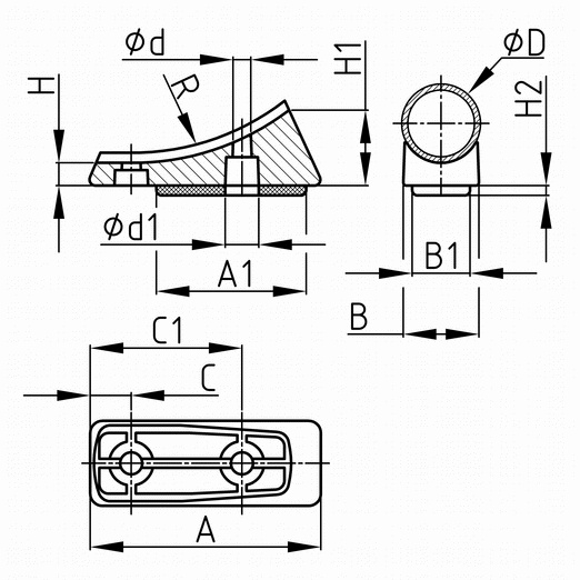 Klzák čiastočne obopínajúci rúrku - s vrty - stúpajúcou s plastovou plochou plášťa Farba: čierna Materiál: telo - Polyethylen (PE) dosadacia plocha - Polyetylén (PE) - bezfarebný