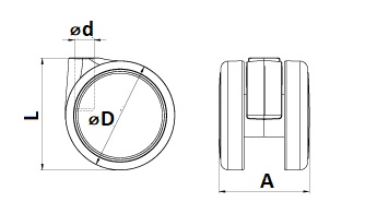 Tvrdé koliesko bez brzdy Max. zaťaženie 30kg Varianty uchytenie: A10x25, B10x31, E10x20, E11x20, E11x20 pl. krúžok (protihlučný), M10x10 Farba: čierna, iné farby na objednávku Materiál: Polypropylén
