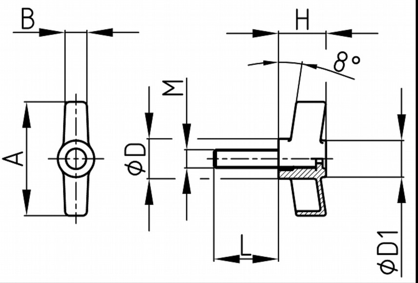 Úvod Sortiment Krídlové skrutky a matice, T-rukoväte Krídlová skrutka