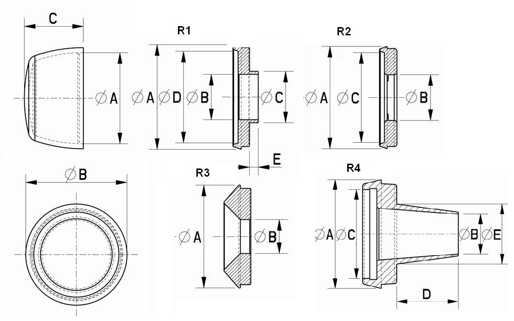 Krytky K2 - použitie pre podložky typov R1, R2, R3 a R4 Rozmery krytky "A" a podložky musí byť zhodné Farba: sivá, hnedá, biela, čierna, podložky - bezfarebné Materiál: PA-6