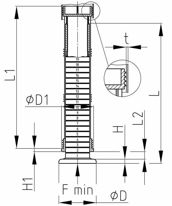 Úvod Sortiment Rektifikácie – celoplastové Noha ku stolom do trubiek – stavacia plocha guľatá