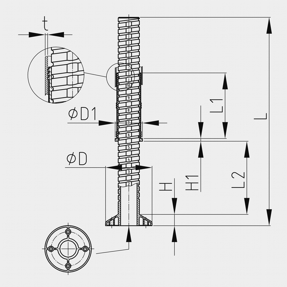 Úvod Sortiment Rektifikácie – celoplastové Noha ku stolom do trubiek – stavacia plocha guľatá