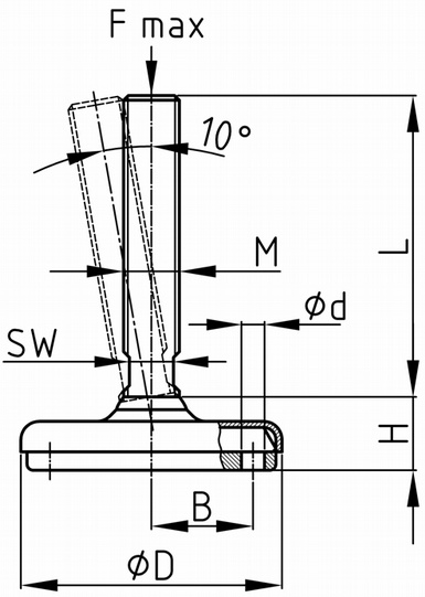 Dosadacia plocha z polyamidu tvrdeného skleným vláknom Krytka z ušľachtilej ocele Od priemeru nohy 80 mm možnosť priskrutkovanie k podlahe Farba: čierna Materiál: základňa - polyamid (PA) + sklené vlákno závit - ušľachtilá oceľ A2 veko - ušľachtilá oceľ A2 podložka - nitrilová guma