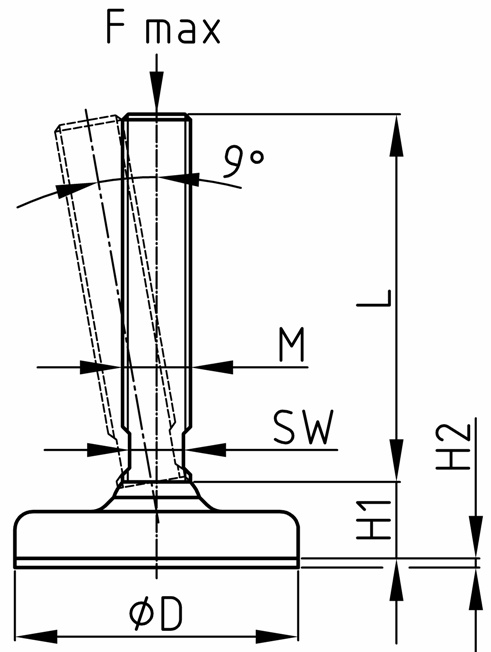 Výkyvná Pre veľké zaťaženie Protišmyková podložka - objednávacie číslo: MFHG 70G, MFHG 90G, MFHG 110G, MFHG 150G Farba: oceľ Materiál: základňa - ušľachtilá oceľ A2 dosadacia plocha - guma (NBR 72 Shore)