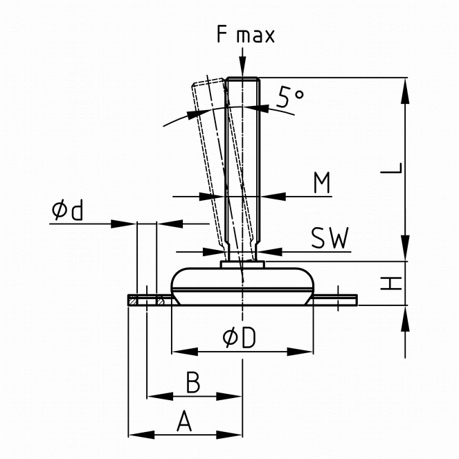 Gumová dosadacia plocha a dve upevňovacie doštičky Tlmí vibrácie, ľahká údržba Farba: gumová podložka čierna / nerezová oceľ A2 Materiál: základňa - ušľachtilá oceľ A2 závit - ušľachtilá oceľ A2 dosadacia plocha - guma (NBR 72 Shore)