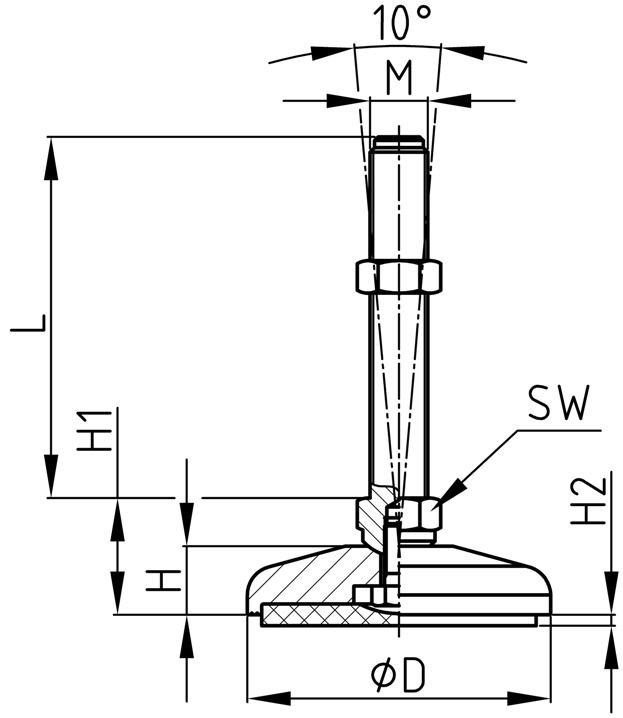 Pre veľké zaťaženie Možnosť protišmykové podložky (objednávacie číslo s "A") Príklady použitia: najmä veľké stroje Materiál: základňa - pozinkovaná oceľ protiskuzová podložka - guma (NBR 70 Shore)