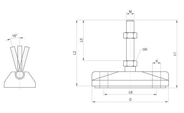 Nastavovacie pätky s kotviacimi otvormi Driek - zinkovaná oceľ, nerez Patka - Polyamid (PA 6) + sklo protišmyková guma Možnosť ESD prevedenie (odvod elektrostatického náboja)