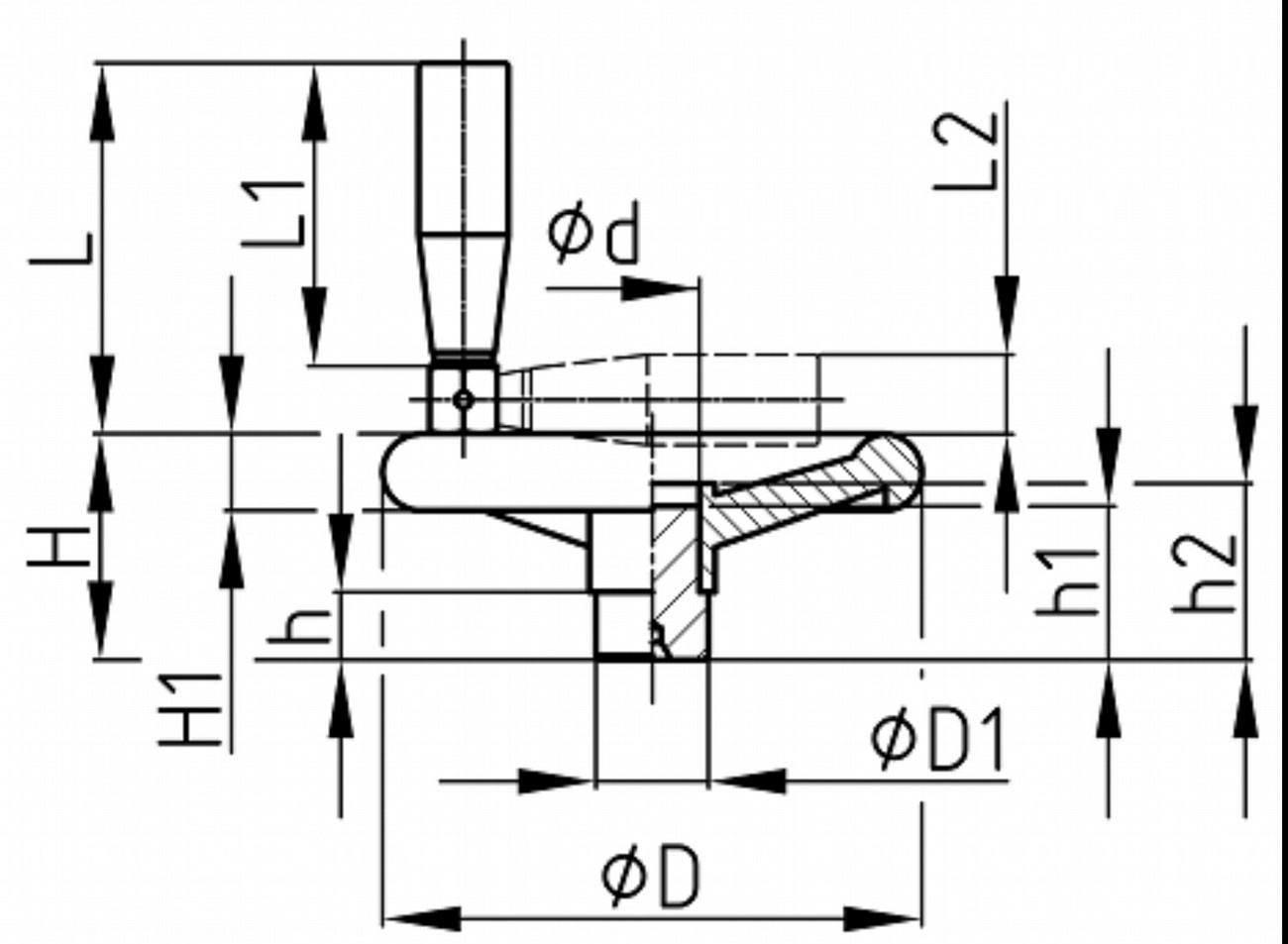 Náboj predvŕtaný pre montáž Materiál a rozmery rukoväte pozri série UGZ Farba: čierna Materiál: duroplast, náboj: pozinkovaná oceľ