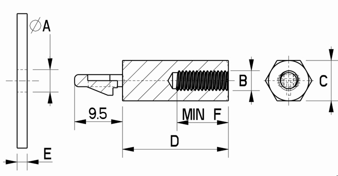 Vybavené vnútorným závitom, montáž zaklapnutím Typ M3 k dispozícii vždy v dvoch vyhotoveniach (pozri stĺpec "E") Farba: čierna Materiál: PA-66