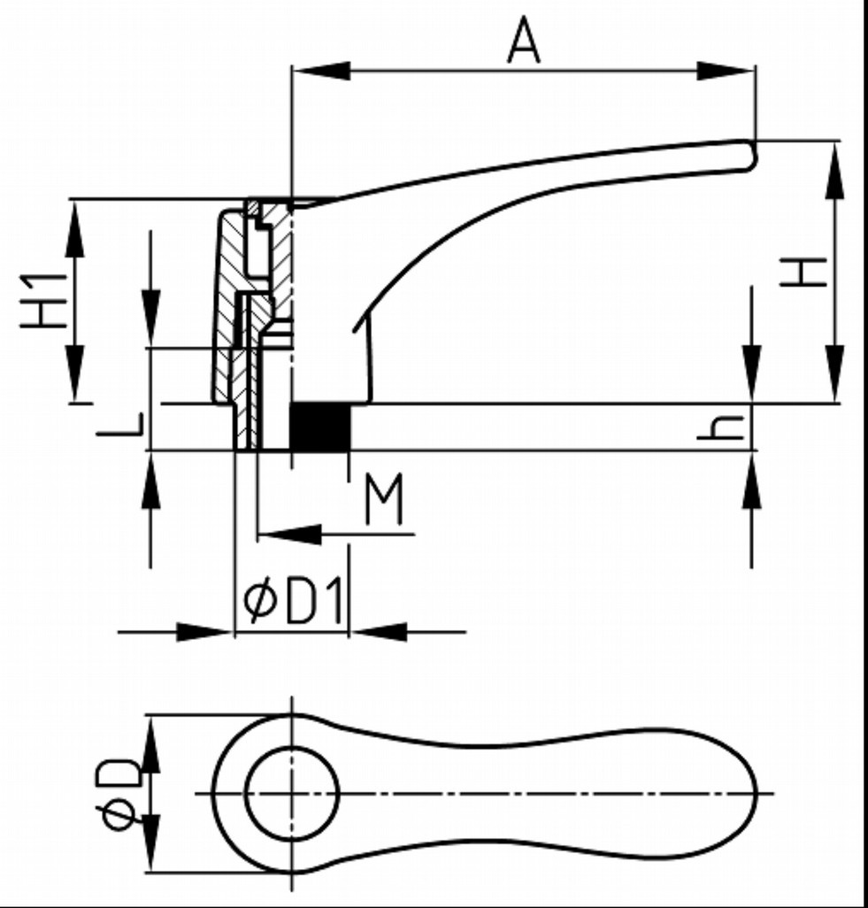Úvod Sortiment Páčky/Kľučky Prestaviteľná páčka s kovovým závitom