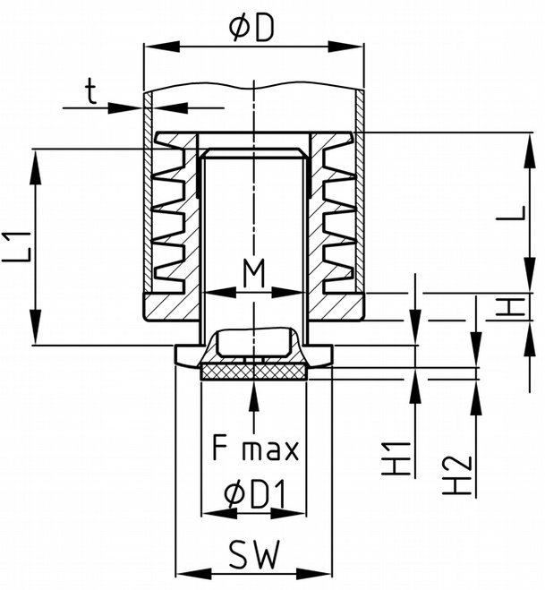 Nastaviteľná záslepka do rúrky - celoplastová s filcom K = dvojdielne vonkajšie telo záslepky Farba: čierna Materiál: telo - Polyamid 6 (PA 6) dosadacia plocha - filc