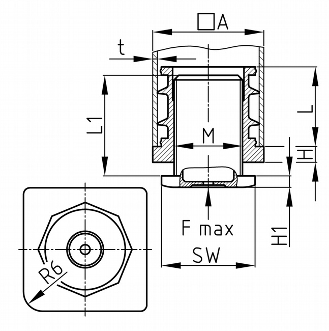 Nastaviteľná záslepka štvorcová - celoplastová s jednou stranou R6 Farba: čierna Materiál: Polyamid 6 (PA 6)