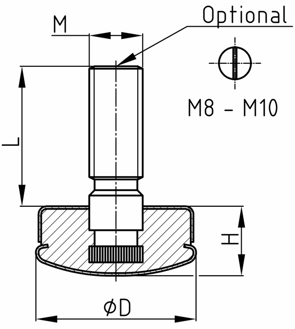 Nastaviteľná skrutka s plastovou hlavou a kovovou plochou plášťa a kovovým krytom Príklady použitia: podnože pod stoly, kovové konštrukcie, regály Farba: niklová Materiál: základňa - Polyethylen (PE) závit - pozinkovaná oceľ krytka - poniklovaná oceľ dosadacia plocha - poniklovaná oceľ