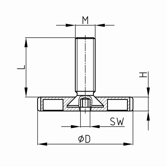 Nastavovacia skrutka s plastovou vrúbkovanou hlavou Príklady použitia: podnože pod stoly, kovové konštrukcie, regály Farba: čierna Materiál: Polyamid (PA) závit - pozinkovaná oceľ