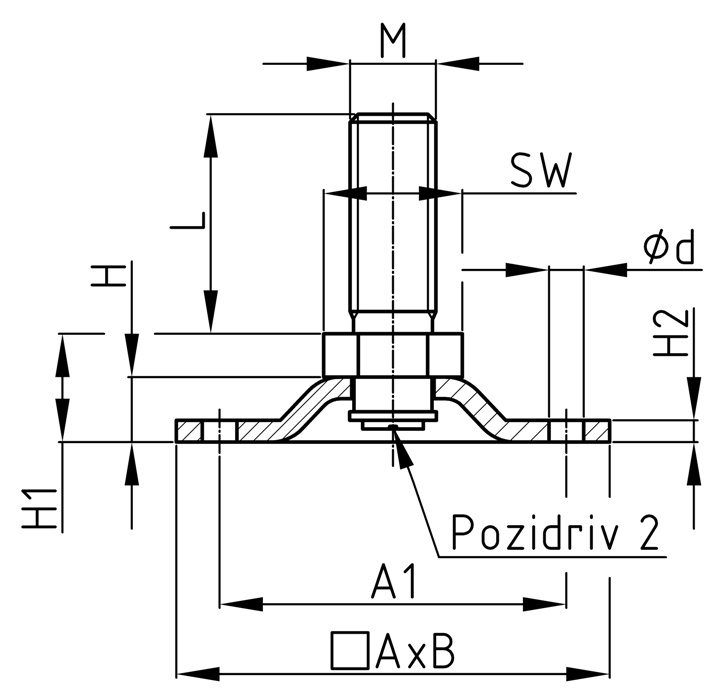 Skrutka rektifikačná - obdĺžniková základňa