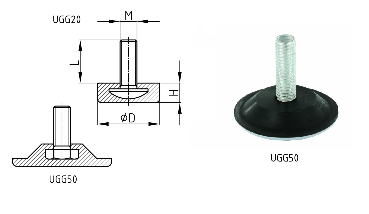 Tlmí zvuk, vhodné pre textilné povrchy, koberce (možnosť použitia aj pre hladké podlahy) Farba: čierna Materiál: základňa - guma závit - oceľ dosadacia plocha - Polytetrafluóretylén (PTFE)
