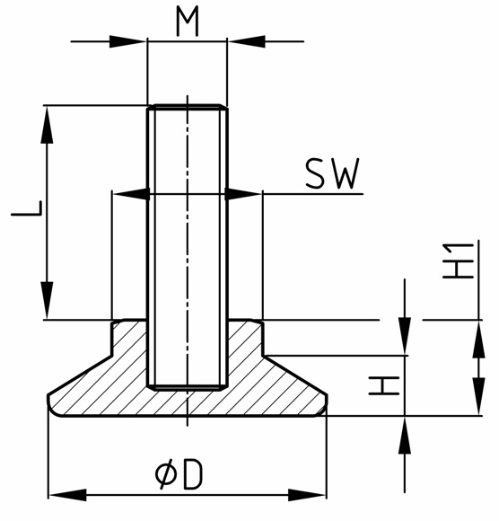 Nastavovacia skrutka s plastovou hlavou a vylisovaným šesťhranom AR = noha s drážkami Príklady použitia: podnože pod stoly, kovové konštrukcie, regály Farba: čierna Materiál: základňa - Polyamid (PA) závit - pozinkovaná oceľ