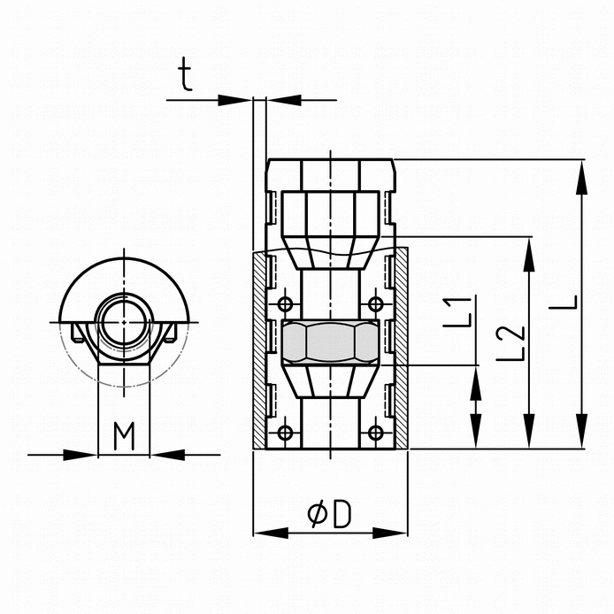 Spojovací článok do rúrky (zostaviteľný) s šesťhrannou maticou vpredu Dvojdielne púzdro bez goliera má kužeľové komory pre šesťhranné matice alebo skrutky Pri uťahovaní závitu sa vonkajšia stena záslepky tlačí na vnútornú stenu rúrky (hmoždinkový efekt) Použitie: pravouhlé pripojenie k traverzám, inštalácia oddielov v existujúcich konštrukciách OL = bez lamiel, SO = iný rozmer goliera Farba: čierna Materiál: telo - Polyamid (PA) matice - pozinkovaná oceľ