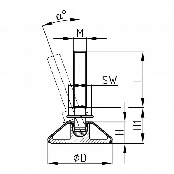 Nastaviteľná skrutka - kĺbový klzák pre stredné zaťaženie s plastovým guľovým čapom, oceľovú krytkou Príklady použitia: podnože pod stoly, kovové konštrukcie, regály Farba: čierna Materiál: základňa - Polyethylen (PE) závit - pozinkovaná oceľ guľový čap - Polyethylen (PE) krytka - nerezová oceľ